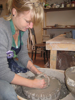 The wheel and I were not in the least bit in sync yesterday. Roberto very kindly helped me make a bowl (bit of Ghost moment!), so at least I have produced something off that damn thing. Here’s me on the wheel, looking a lot more proficient than I actually am: