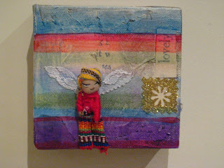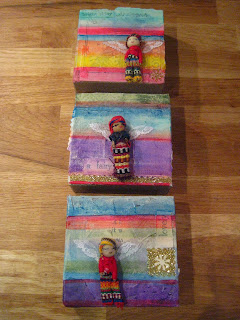 I’m really pleased with these little squares. They measure about 10x10x4cm on lovely linen canvas and have lots of nice colour and texture. I listened to Tristan Prettyman‘s album ‘Hello’ while I was doing them, which is nice and soothing and helped with the internal butterflies. I can particularly recommend Hello, War Out Of Peace, Echo and California Girl.
