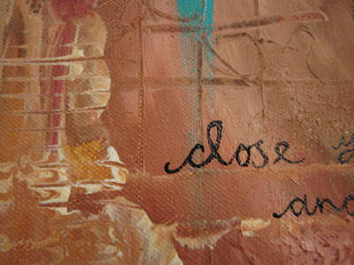 And another piece of text that arrived in my head one day (like the Unfinished Portraits painting) which says ‘close your eyes and look with your heart’. I’ve been wanting to use it in a painting for ages, and may even use it in more than one, as it is very relevant to me right now. Also I really love writing with paint.