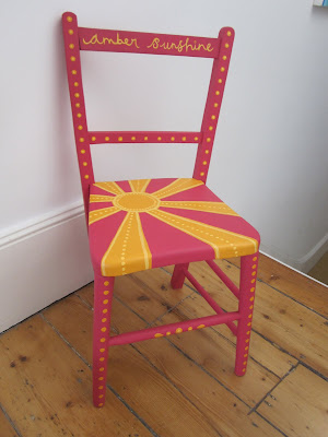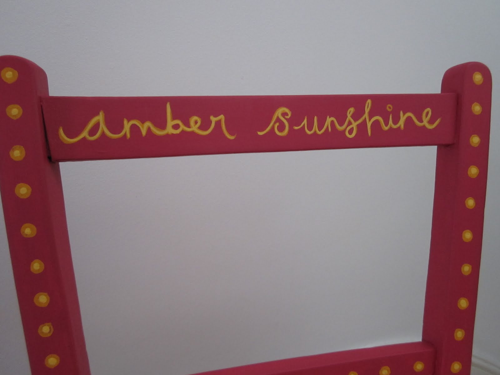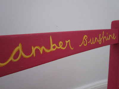 We had the idea that I could paint Amber’s name onto the chair, and it could live at Granny’s house for when Amber visits, and be her Special Very Own Chair. (Grandpa has one, so why not?)