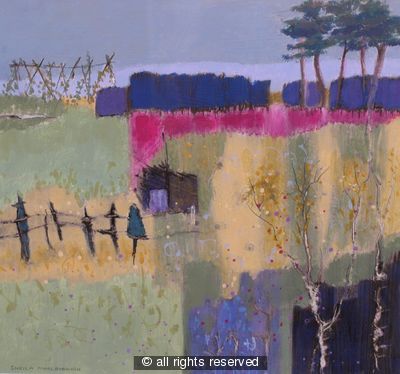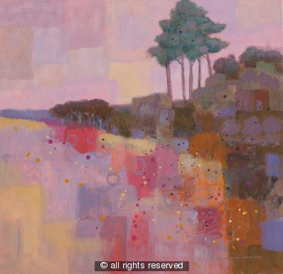 She works mostly in acrylics with landscape as a common subject, which is then made semi abstract, with the focus on colour and composition.