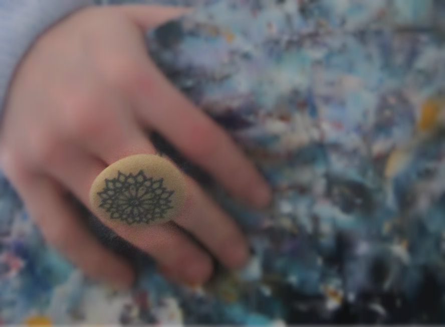These were inspired by Alisa Burke. You just need a smooth pebble or two and a couple of ring bases {easy to find on Ebay or in a local craft store}.